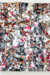 Hij giet, spat en kwast. Als de verf droog is, volgt het tweede deel. Plamuren, opzetten tot hij er in de laatste fase weer overheen gaat schilderen. Net zolang tot het goed is. Zijn schilderijen groeien organisch. Ze zijn gelaagd, lijken weggelopen uit de natuur, met uitstulpingen van verf die net niet van het doek vallen. Soms denk je aan een stuk strand met vogelpoep erop, of aan korstmossen in de natuur, aan licht dat in een bosmeertje valt of – als je wilt – aan een melkwegstelsel ver in het heelal.